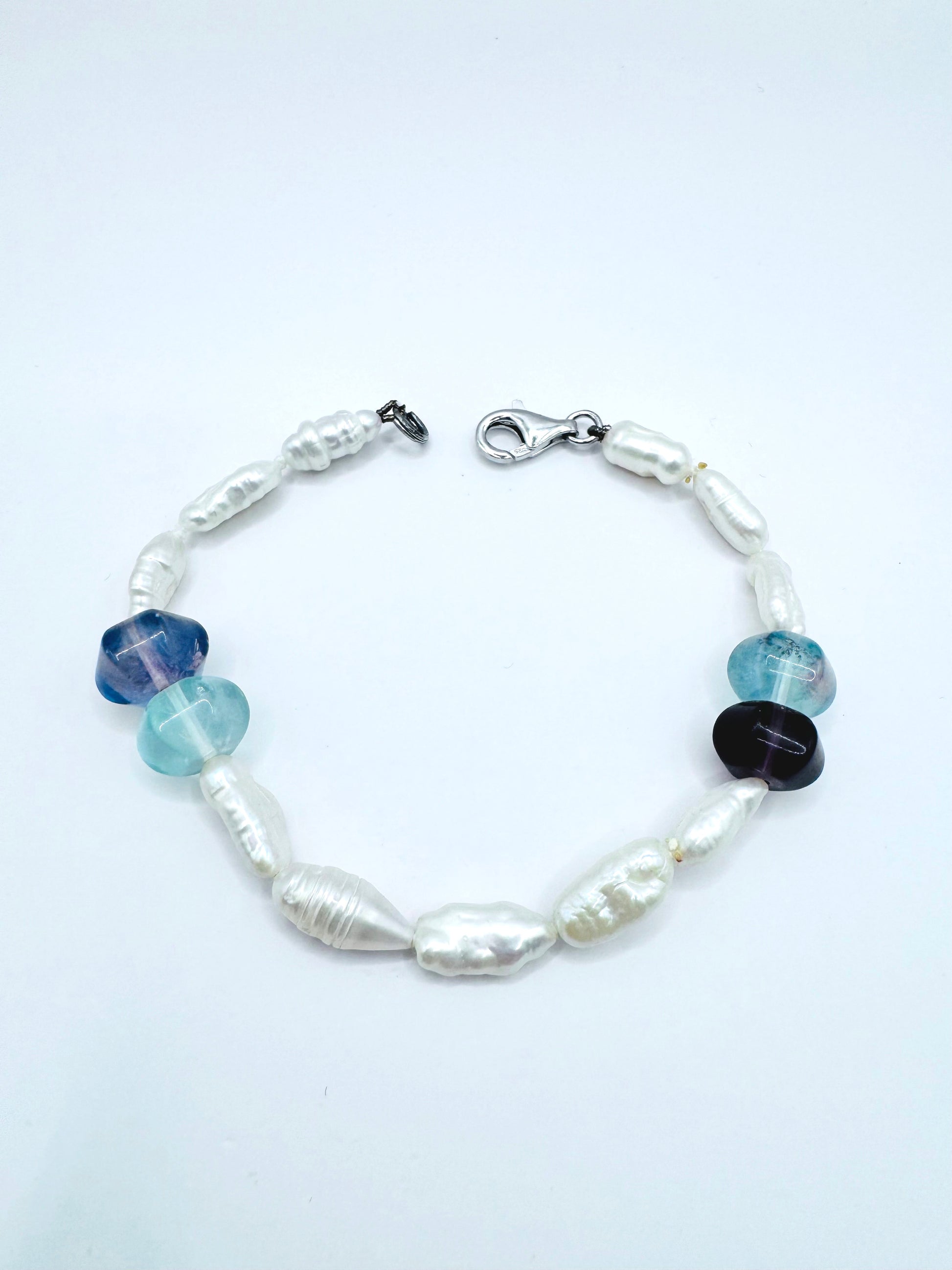 Bracciale con Perle di fiume barocche e pietre dure naturali.