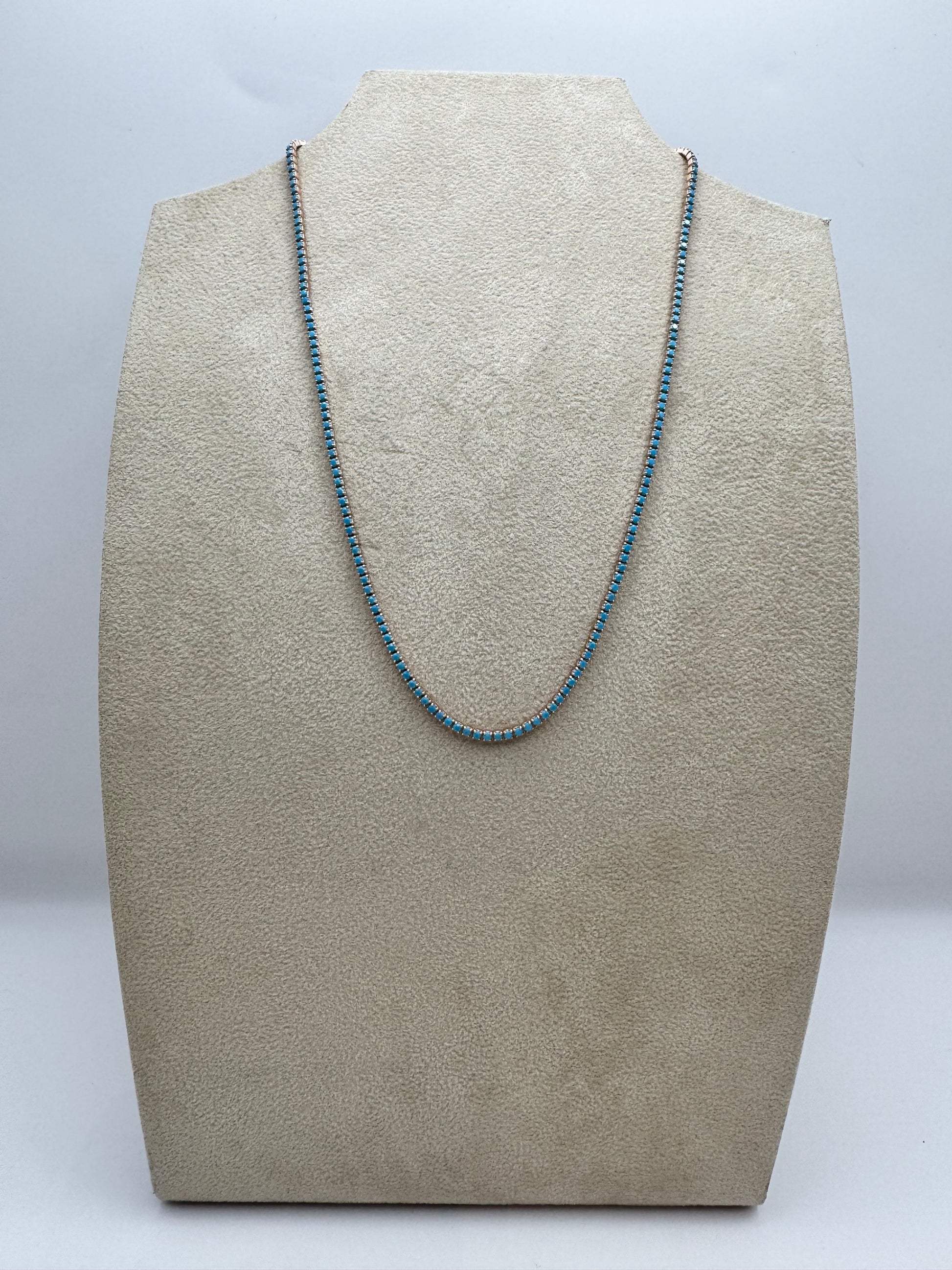 Collana Tennis in Argento 925 Oro Rosa e Zirconi azzurri.