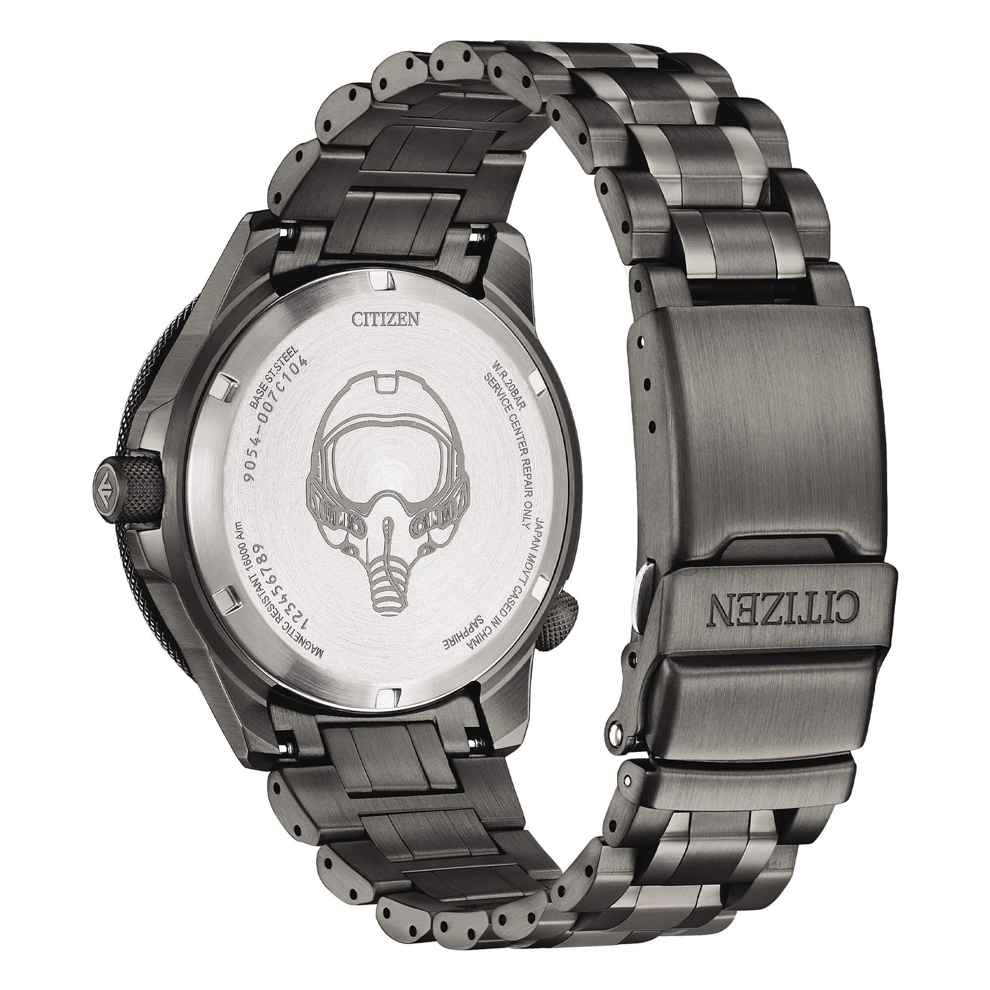 Cassa e bracciale in acciaio. Vetro zaffiro con trattamento antiriflesso. Ghiera interna con sistema regolo calcolatore aeronautico. WR 20 bar.